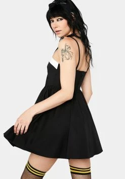 cuz you’re chasing trouble. This mini dress comes with spaghetti straps, a collared sweetheart neckline, back zip closure, and a babydoll construction.