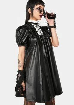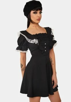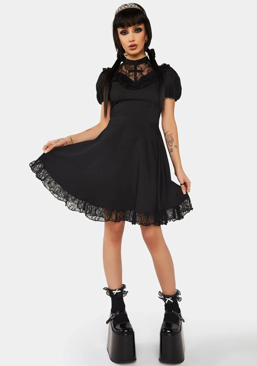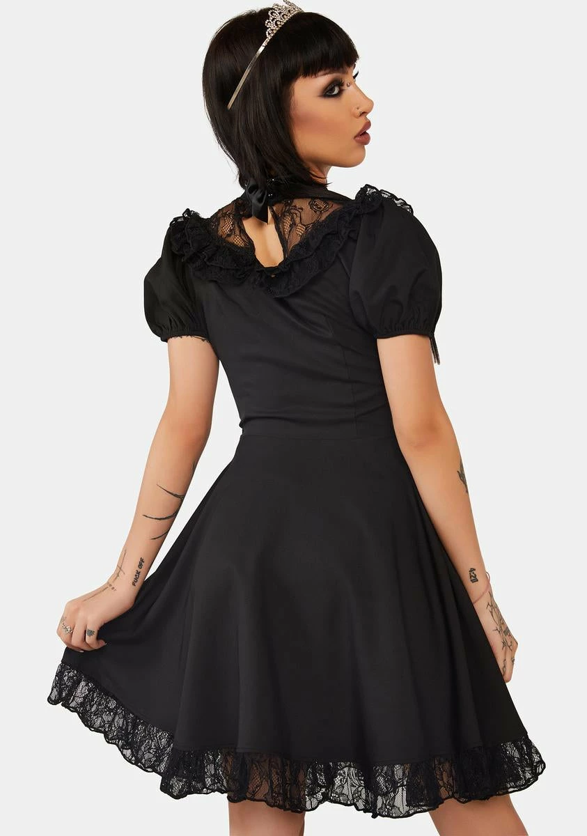 DARK IN LOVE Gothic Death Cross Ruffle Lace Neckline Dress