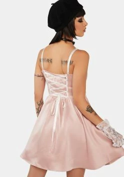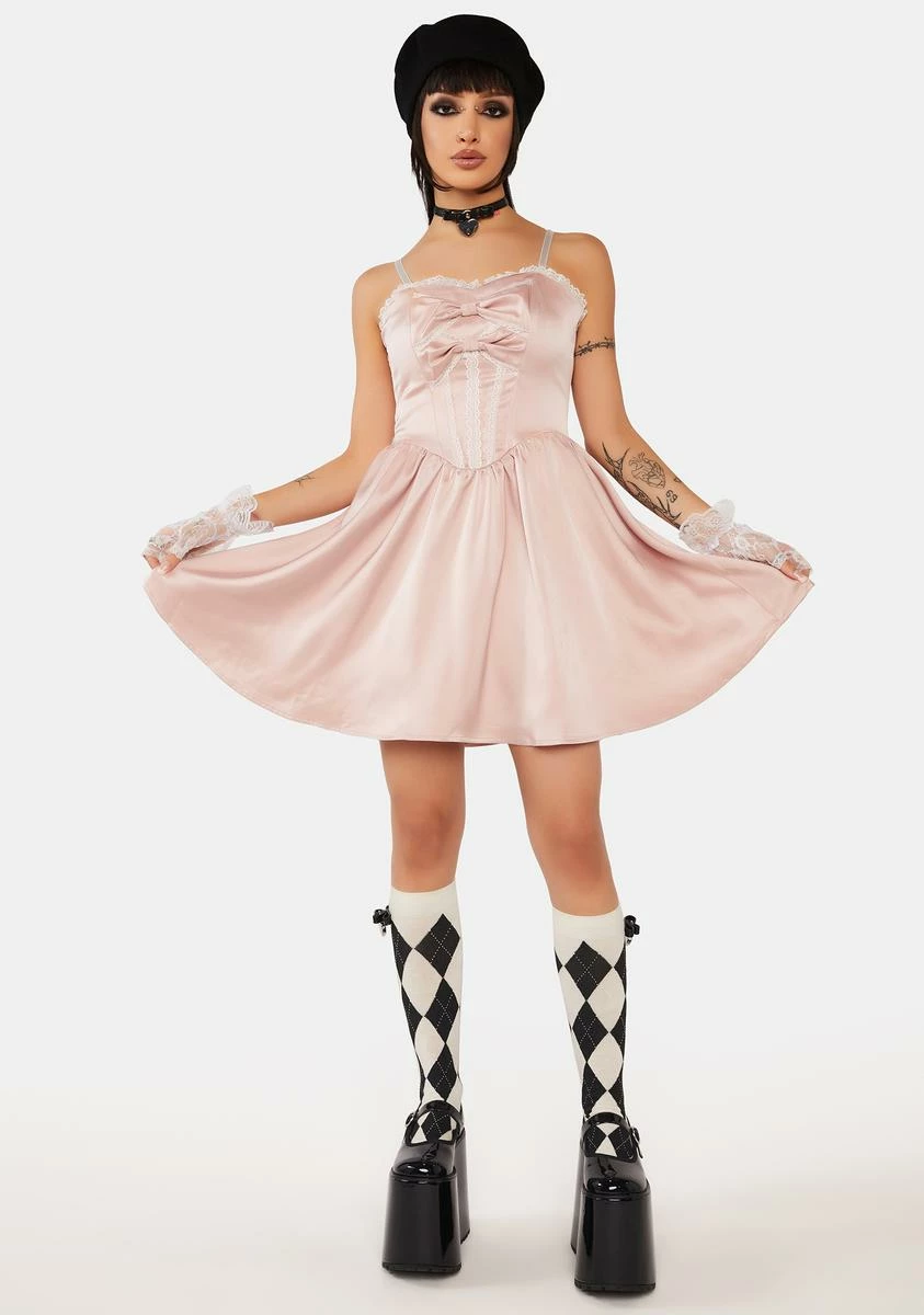 DARK IN LOVE Pink Doll Bow Knot Mini Strap Dress