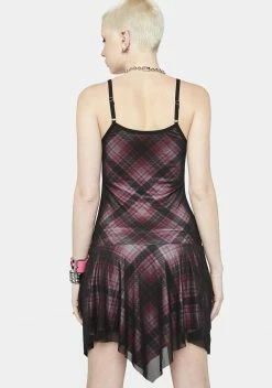 cuz you’re losing your grip on reality! Let it all out in this mini dress that has a plaid print with a sheer mesh overlay, a square neckline with ruching details, adjustable cami straps, and an asymmetric ruffled hem.