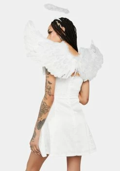 cuz you’re perfect, bb! This cosplay costume has “Betty” embroidered at the chest, a satin construction, cinched bust cups with adjustable ties, and ruffled trim. Includes a mini dress, feathered angel wings, and a halo.