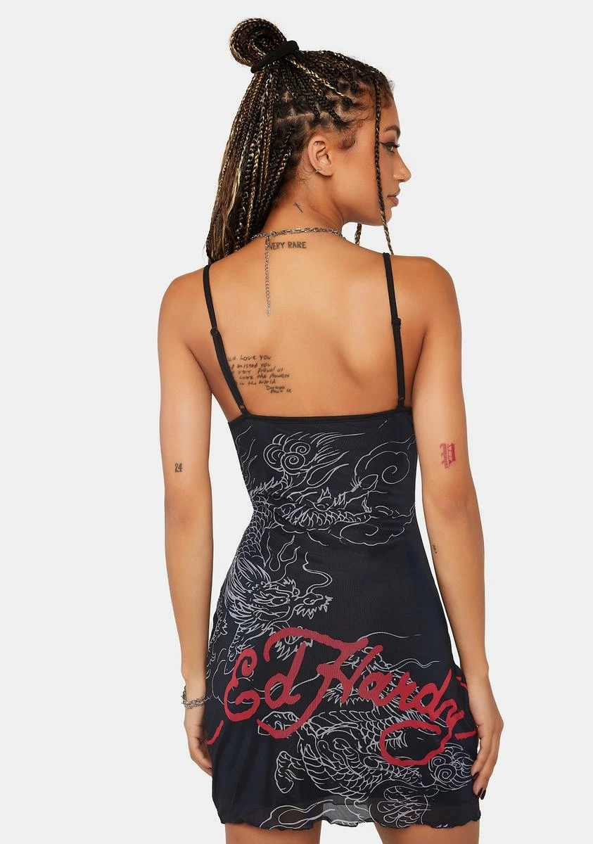 Ed Hardy X Dolls Kill Dragon Mesh Slip Dress