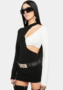 cuz it’s all about you! This mini dress has a trippy print all over, a cowl neckline, ruching along the sides, a bodycon silhouette, and comes with a chain waist belt with an adjustable clasp and a rhinestone crescent moon charm.