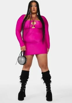 cuz you can’t help it. This mini dress comes with long sleeves, a square neckline, halter neck straps, keyhole cut outs, o-ring details, and a bodycon fit.