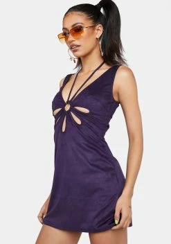 cuz you can’t help it. This mini dress comes with long sleeves, a square neckline, halter neck straps, keyhole cut outs, o-ring details, and a bodycon fit.