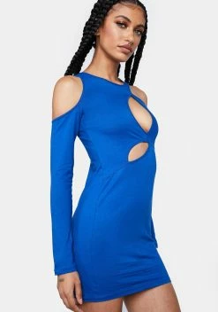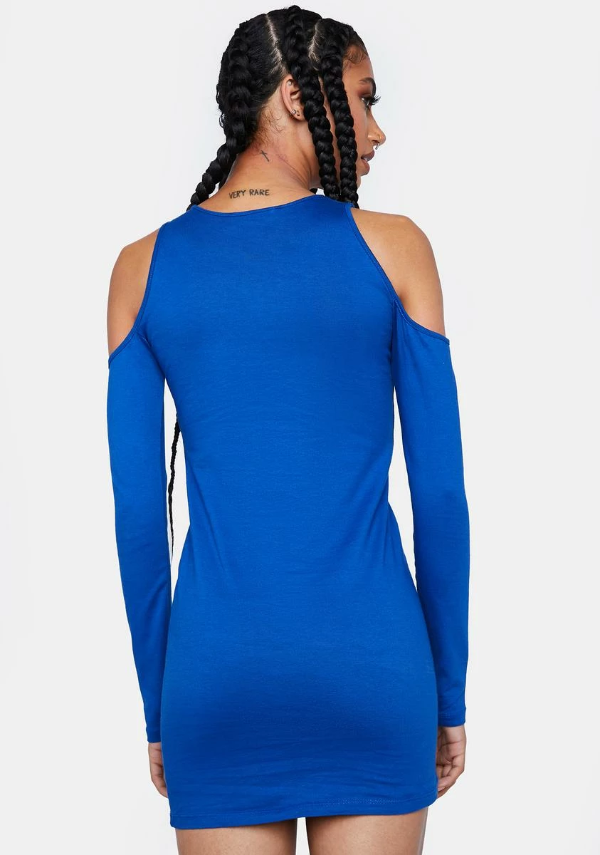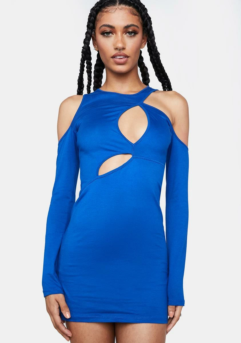 you’re a lil stunner. This mini dress has a bodycon fit, long sleeves with a cold shoulder design, and abstract keyhole cutouts in front.