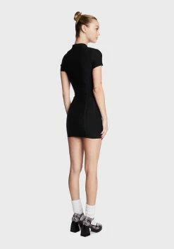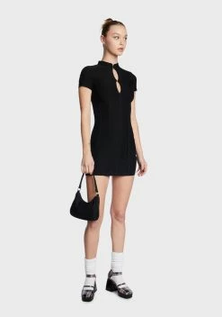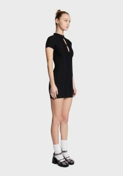 cuz ur such a flirt. This mini dress has a stretchy construction, cut out detailing, a high neckline, a bodycon fit, and front button closures.