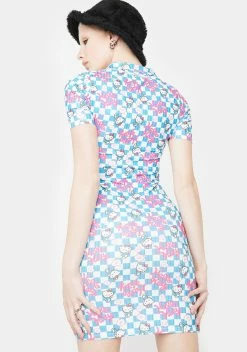 cuz they can always count on you, babe! This short sleeve mini dress has a slim fit, a collar detail, and a Hello Kitty checkered print all over.
