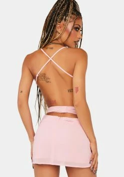 cuz they’re dreaming about you. This mini dress comes in a chiffon construction, with crossback adjustable spaghetti straps, a plunging neckline, cut out details, twisted front details, and a back zip closure.