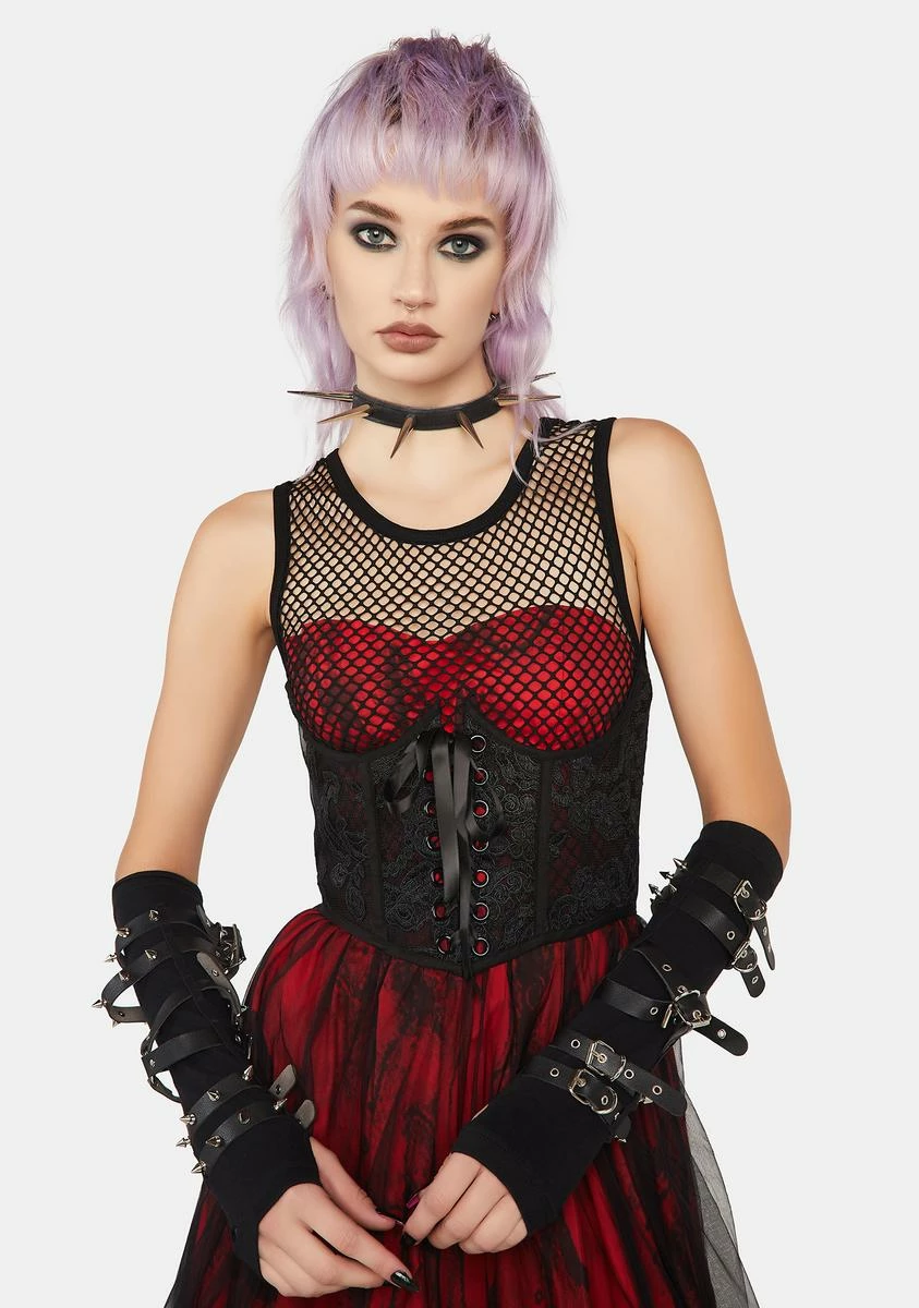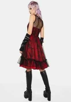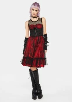 PUNK RAVE Black And Red Dark Mesh Spliced Woven Dress