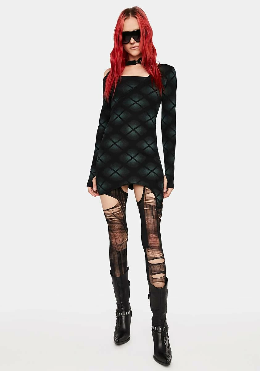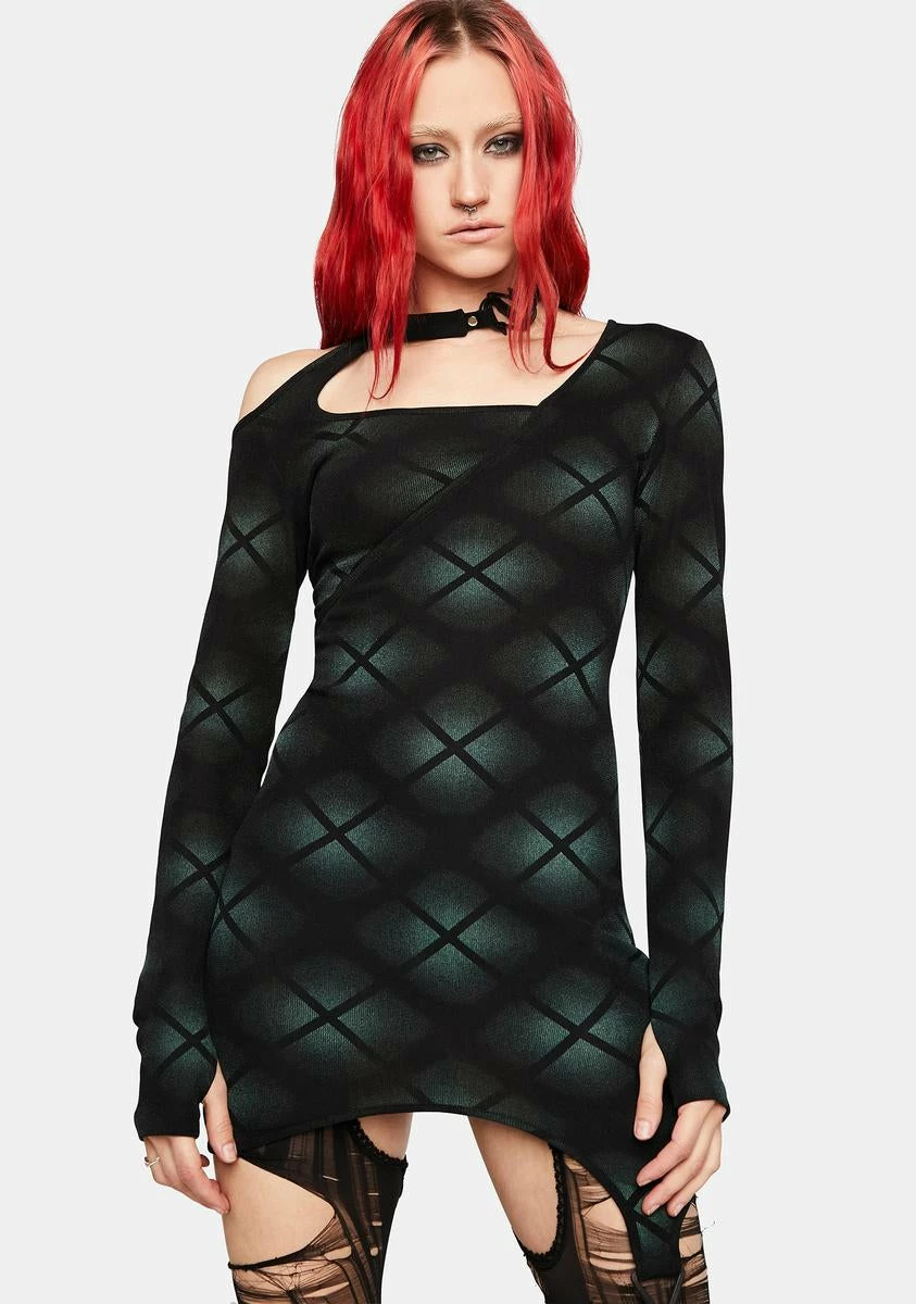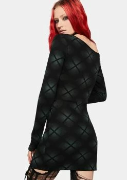 PUNK RAVE Dark Asymmetric Sexy Plaid Print Dress