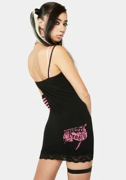 cuz you are in charge. This cami dress has a skeleton graphic and lace detailing.