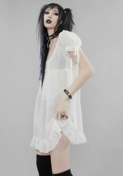 cuz you’ll charm them with your wicked ways. This velvet mini dress has short puff sleeves, a low sweetheart neckline with a pentagram and bat charm, and luscious lace trim.