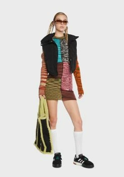 cuz u bring the harmony. This mini dress has a space dye knit ribbed construction, a multi panel patchwork design, a mock neckline, cut out detailing, long sleeves, contrast colored stitching, and a stretchy fit.