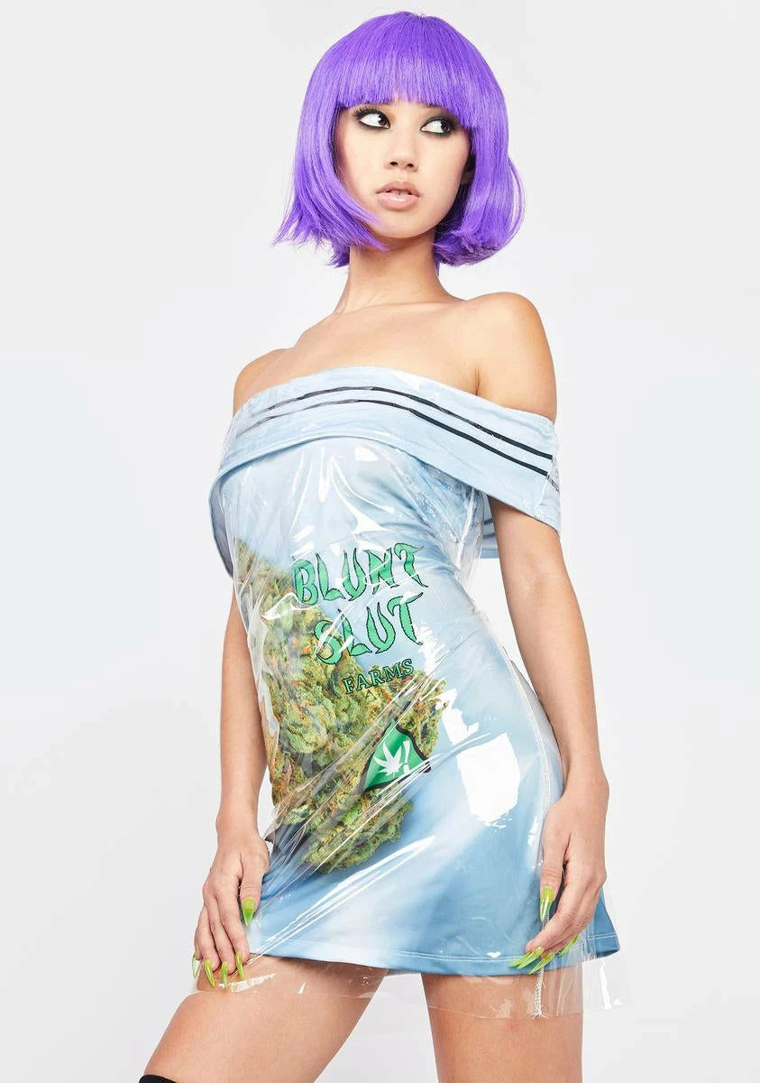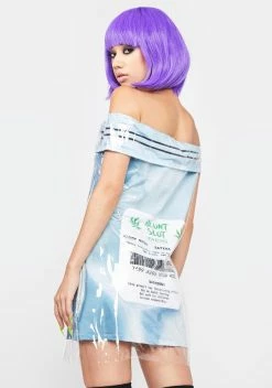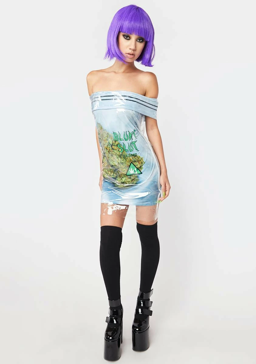 because you say what’s on your mind. This costume mini dress is shaped like a plastic baggy with a label printed on the back.