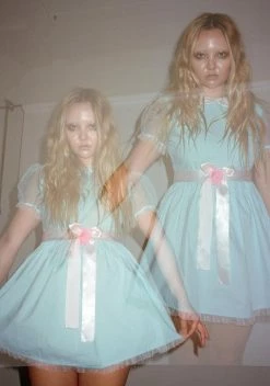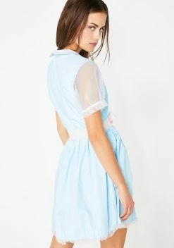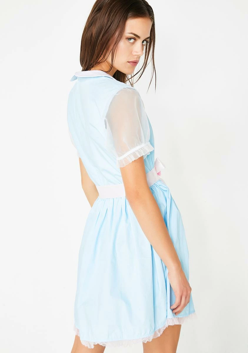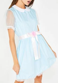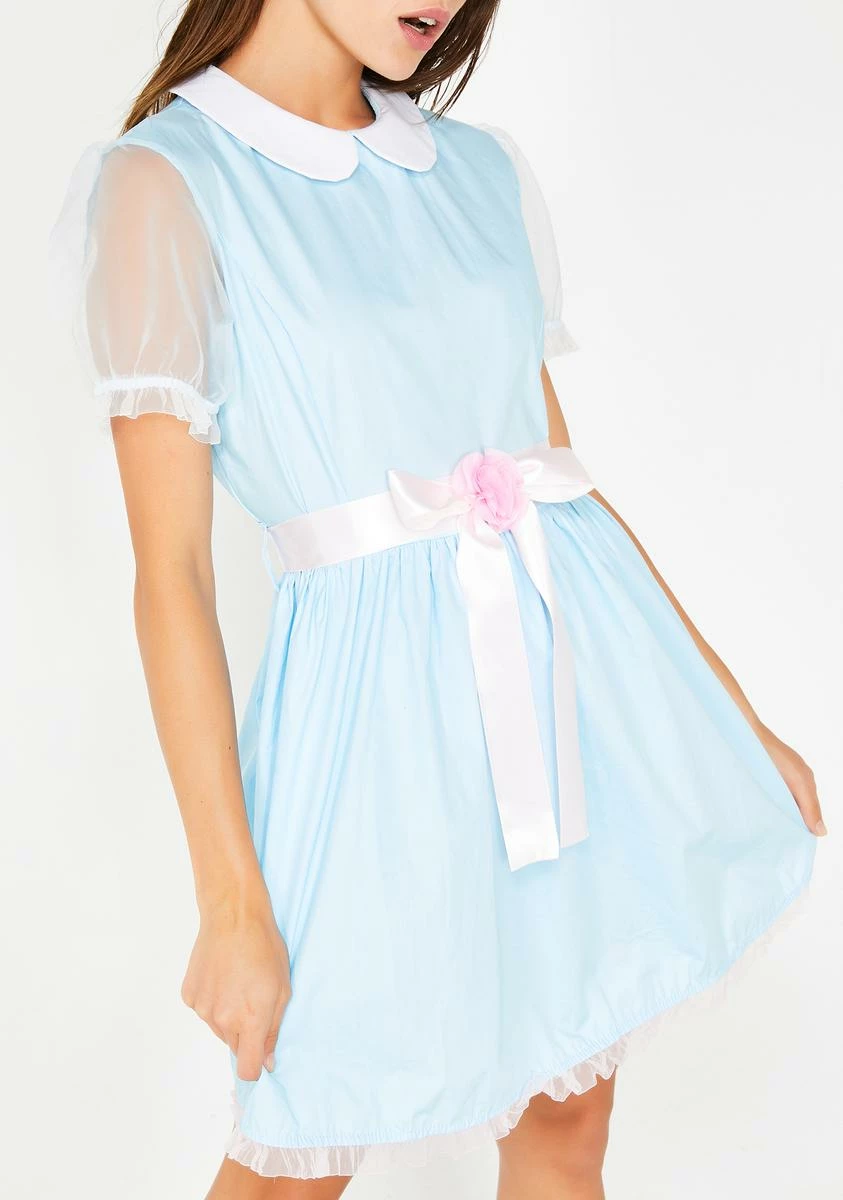 forever, and ever, and ever. Make ’em scream ‘Redrum’ when ya rock this creepy lil babydoll dress that has lace trim, sheer sleeves, and a lil bow tie N’ rose detail.