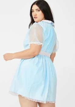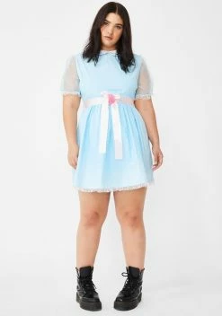 forever, and ever, and ever… Make ’em scream ‘Redrum’ when ya rock this creepy lil babydoll dress that has lace trim, sheer sleeves, and a lil bow tie N’ rose detail.
