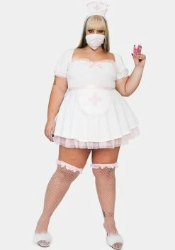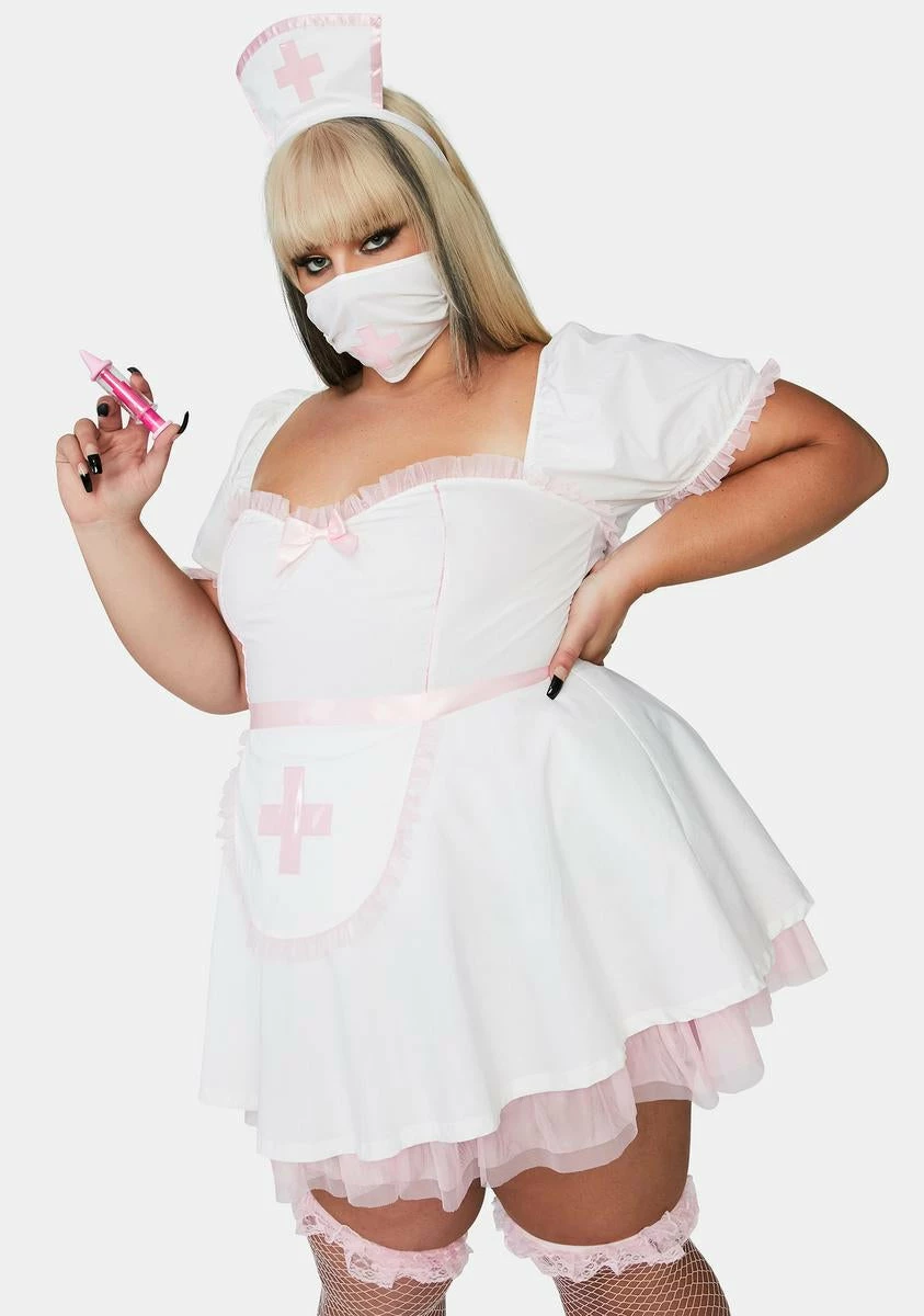 you’ve got good bedside manner. Tend to their wounds in this sexy nurse costume that includes a mini dress with tulle ruffle details and a matching mask and headband.