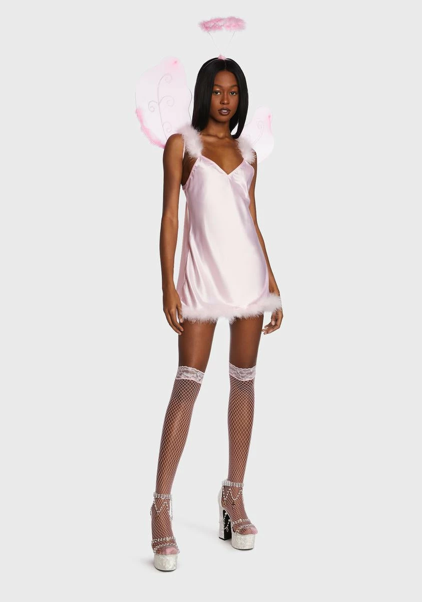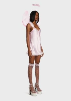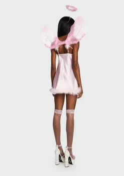 you’re 99% angel, but ohhhh, that 1%!?!? They can feel your halo in this sexXy costume set that has an innocent AF marabou trim mini dress, a dainty halo, and matching wings.