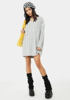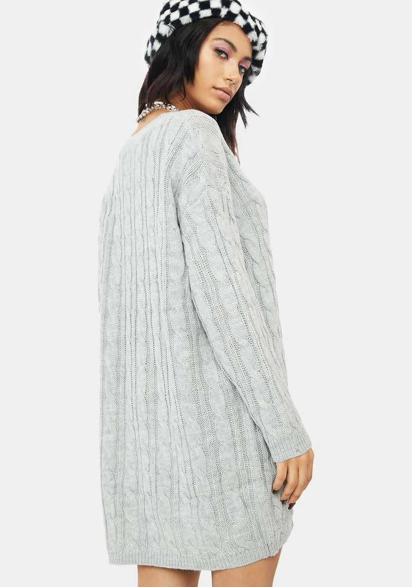 let’s cozy up together, babe! This snuggly long sleeve sweater dress has a cozy oversized fit, a warm cable knit construction, and a V neckline.