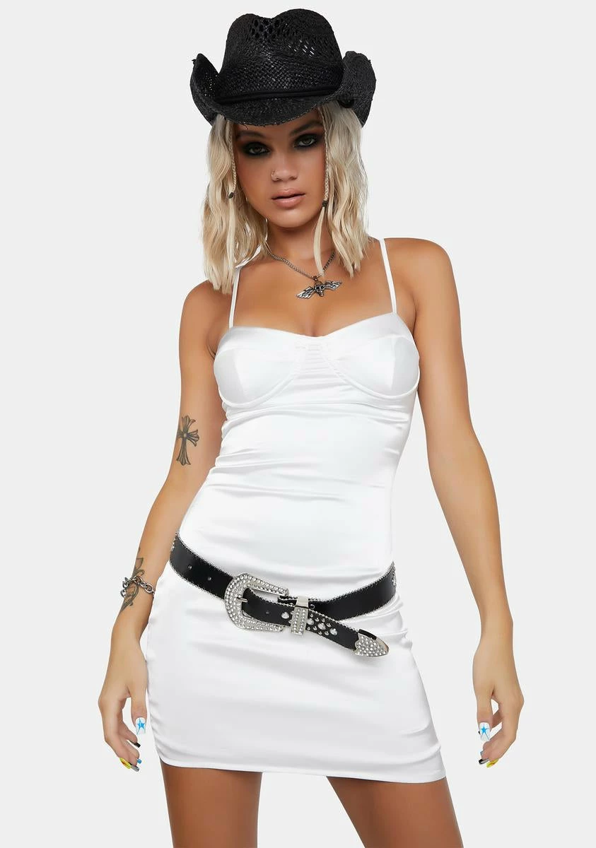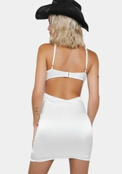 cuz the only way they’ll get a chance is in their dreams! This mini dress has a silky fabrication, underwire bust cups, adjustable shoulder straps, and hook-and-eye closures at the open back.