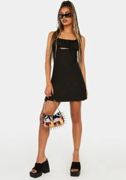 cuz you are fabulous babe! Show that confidence off with this mini dress that has ruched detailing, adjustable spaghetti straps, a cut out design, and a back zip closure.