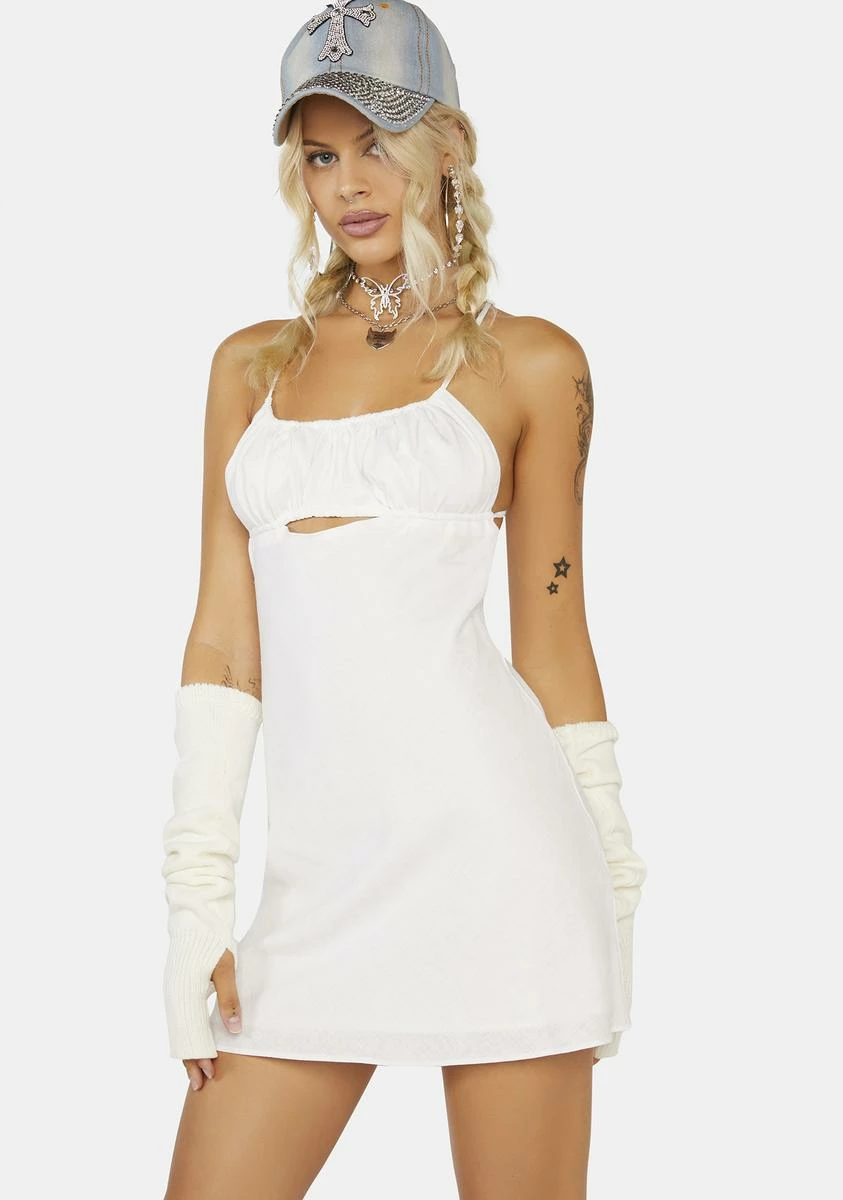 cuz you are fabulous babe! Show that confidence off with this mini dress that has ruched detailing, adjustable spaghetti straps, a cut out design, and a back zip closure.
