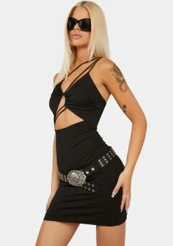 let’s get away. This bodycon mini dress comes with a twist front, upper front cut out, v neckline, and long sleeves.