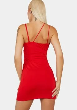 cuz you’re ready for a good time. This mini dress has asymmetrical shoulder straps and chest cutouts, a bodycon fit, and a stretchy construction.