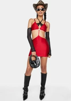 cuz you can’t help it if you cause a commotion. Break the law with this mini dress that has a plunging neckline, O-ring hardware, spaghetti straps, a cut out design, and a bodycon fit.