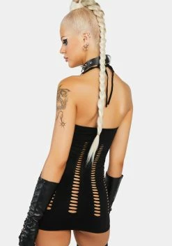 cuz you just have that effect. This mini dress has slashed cutouts all over, a bodycon fit, and adjustable halter ties.