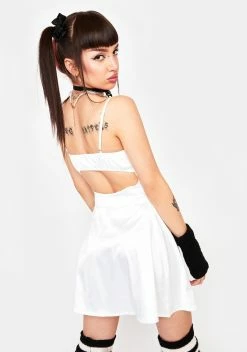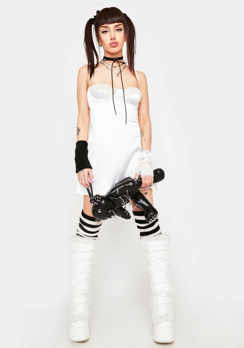 I’m craving your touch! This slip dress has a satin construction, a low square neckline with lace trim, adjustable cami straps, and a cutout at the back.