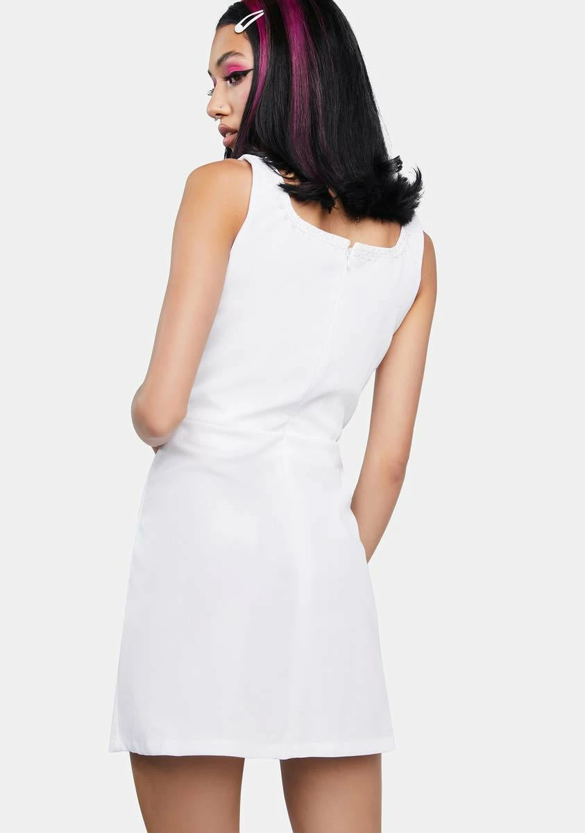 you’ve been on my mind since the beginning of time. This velvet mini dress has a low square neckline, front lace up ties, embroidered detailing, a back zipper closure, and a bodycon silhouette.