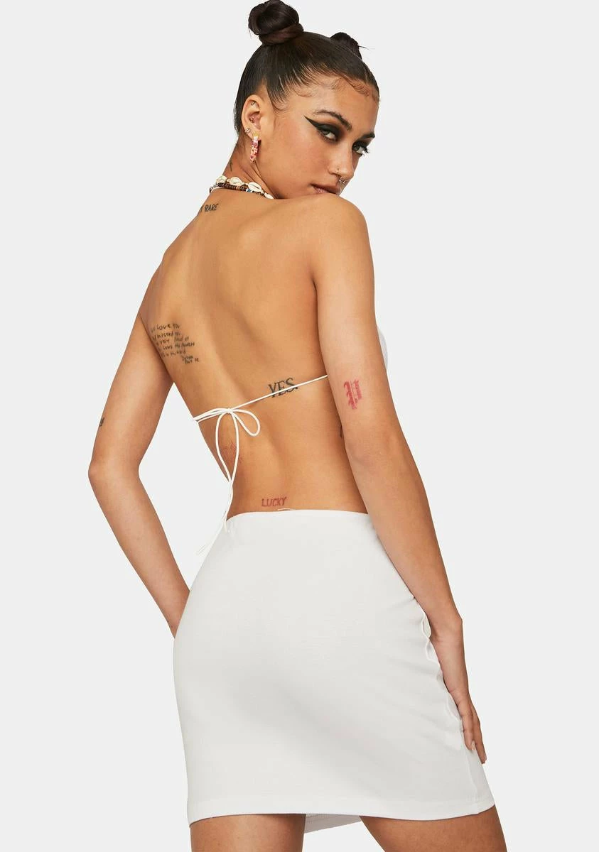 cuz this song makes me dance! Stand out in the club with this mini dress that has a ribbed construction, a halter neckline with adjustable ties, an O-ring hardware design, and a bodycon fit.