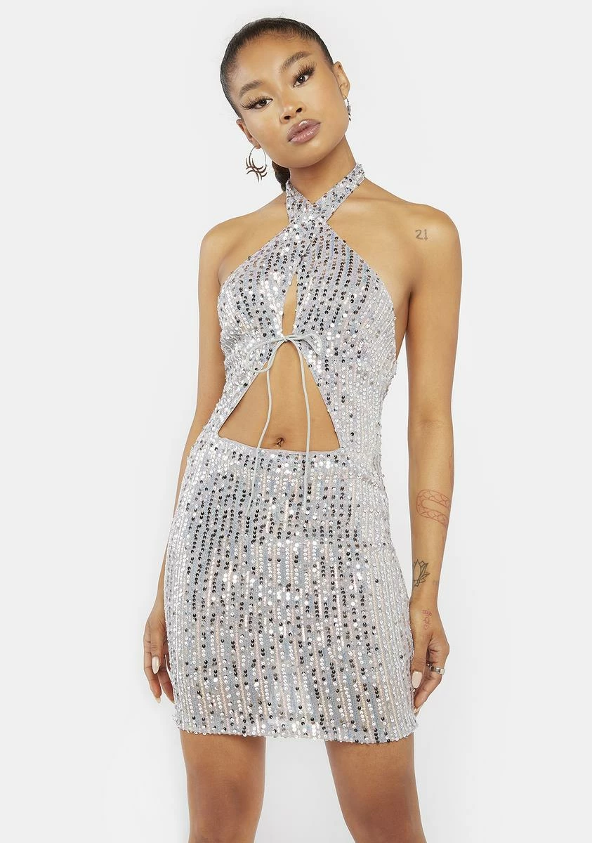 X_Hot & Delicious Chrome Hit The Club Sequin Halter Dress