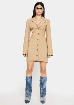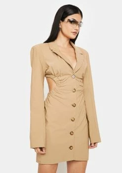 X_Hot & Delicious Taupe Boss Moments Cut-Out Blazer Dress