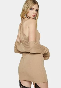 X_HYFVE Taupe An Evening Out Mini Dress Set