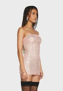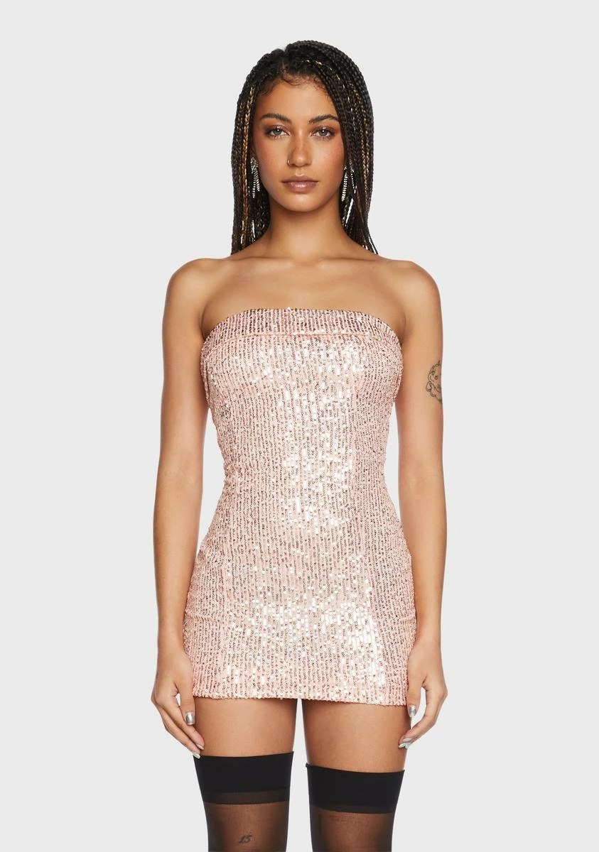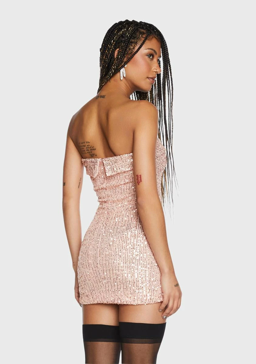 cuz there’s nowhere better. This dress comes in a bodycon sequin construction, with a strapless fit, and a back zip closure.