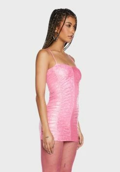 cuz you hypnotize them all. This dress has a holographic construction, a ruched design, adjustable shoulder straps, and a bodycon fit.