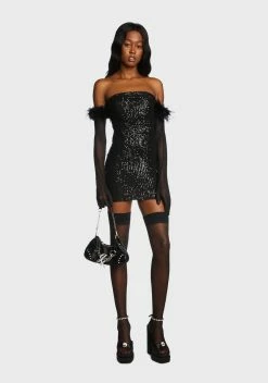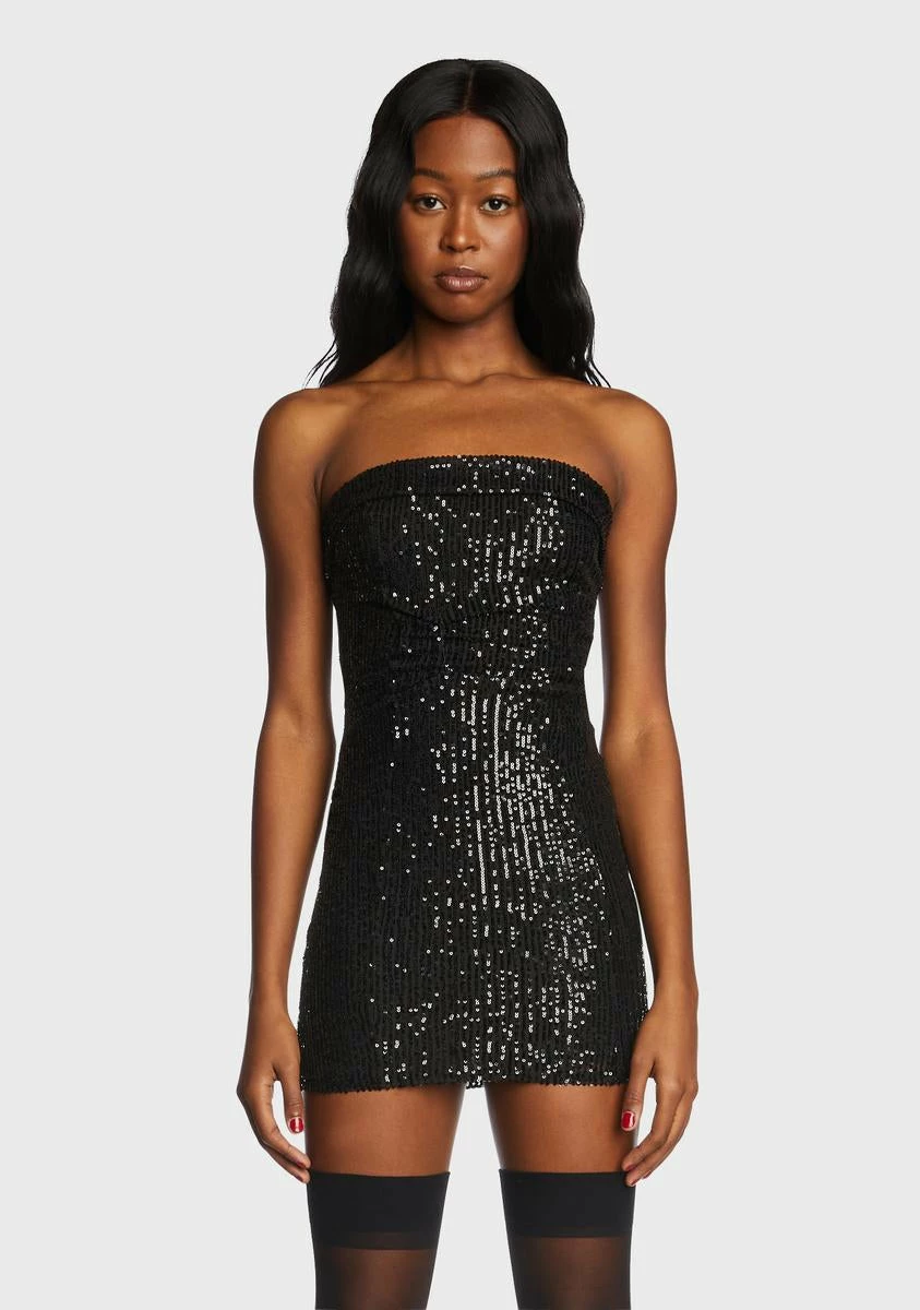 cuz there’s nowhere better. This dress comes in a bodycon sequin construction, with a strapless fit, and a back zip closure.