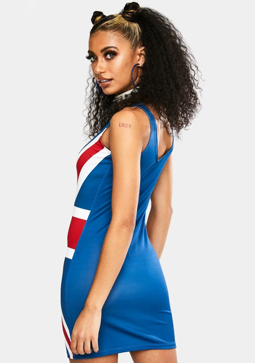 cuz they treat you like royalty. This mini dress has a bodycon fit and a British flag print all over.