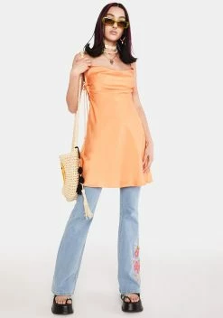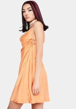 cuz you’re ready for that slow dance. Style it up in this mini dress that has spaghetti straps, a cowl neckline, ruching on the sides with adjustable ties, and side slits on the hem.