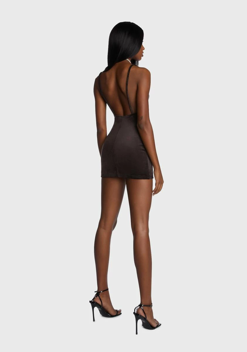 cuz you’re the name in every headline! This fitted mini dress has a velour construction, rhinestone heart details on the shoulder straps, and a low cut back.