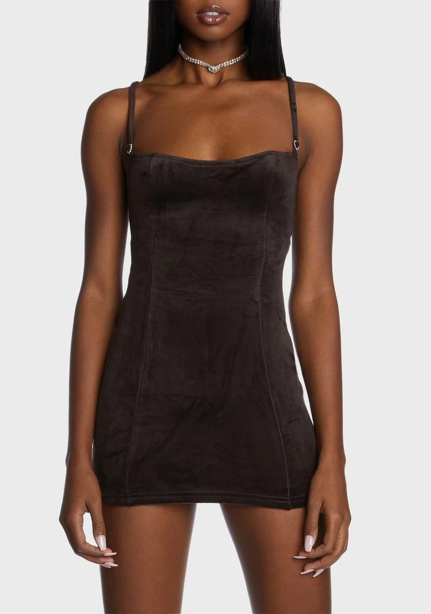 X_New Pink Chocolate Starlet Moments Velour Mini Dress