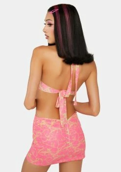 cuz you’ve got their jaws on the floor. This mini dress comes with an asymmetrical neckline, cut out details, a halter neck and back tie closure, and a lightning print all over.