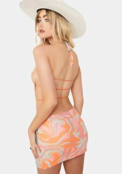 cuz you’re a work of art. Look timeless and sexy with this mini dress that has an all over swirl print, a halter neckline with adjustable ties, an open back, a strappy design, and a bodycon fit.