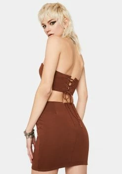 X_No Vacancy Cocoa Face The Music Mini Dress