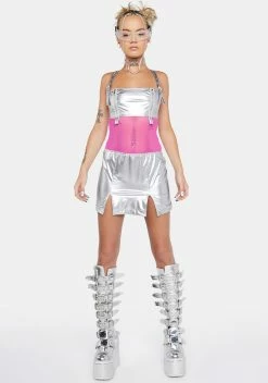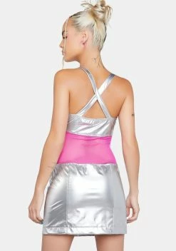 X_Oh Yes Chrome Space Babe Vinyl Mini Dress