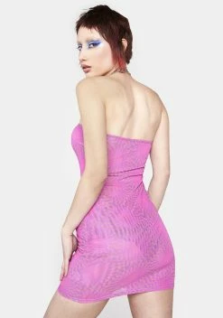 cuz you keep it trippy! This strapless mini dress has a sheer mesh construction, a stretchy bodycon fit, and an optical print all over.